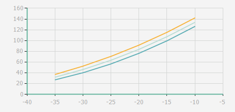 | 蒸發溫度 | 制冷量+/-5% | 能耗+/-5% | 現在能效+/-5% | 氣體流速+/-5% | 能效+/-7% | ||||