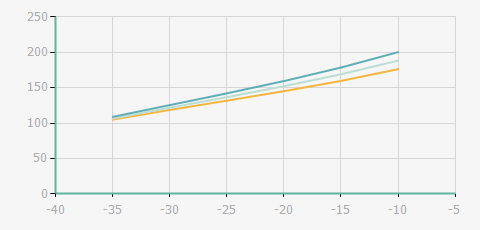| 蒸發溫度 | 制冷量+/-5% | 能耗+/-5% | 現在能效+/-5% | 氣體流速+/-5% | 能效+/-7% | ||||
