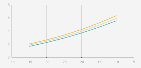| 蒸發溫度 | 制冷量+/-5% | 能耗+/-5% | 現在能效+/-5% | 氣體流速+/-5% | 能效+/-7% | ||||