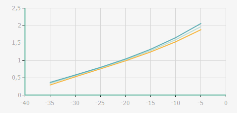 | 蒸發溫度 | 制冷量+/-5% | 能耗+/-5% | 現在能效+/-5% | 能效+/-7% | ||||