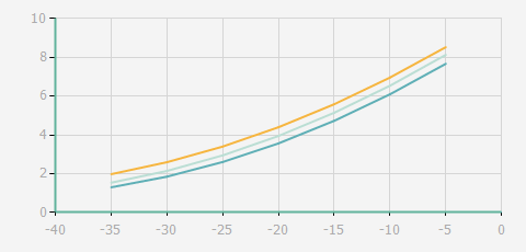 | 蒸發溫度 | 制冷量+/-5% | 能耗+/-5% | 現在能效+/-5% | 能效+/-7% | ||||